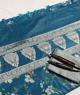 This Gorgeous Banarasi Pure Chanderi Zari Border Printed Saree, You Can Wear It In Any Occasion.