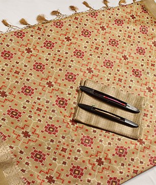 Buy Latest Pure Chanderi Zari Border Printed Saree at very affordable cost from BunkariFashion.com.