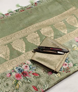 This Gorgeous Banarasi Pure Chanderi Zari Border Printed Saree, You Can Wear It In Any Occasion.