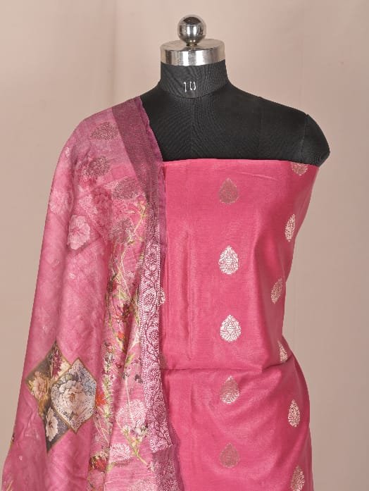 Pure Silk Double Print Chanderi Zari Booti Suit BF33N0035