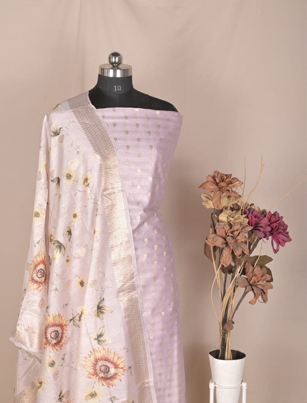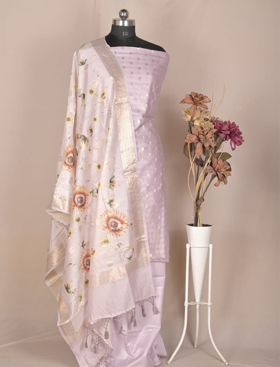 Pure Silk Double Print Chanderi Zari Booti Suit BF33N0035