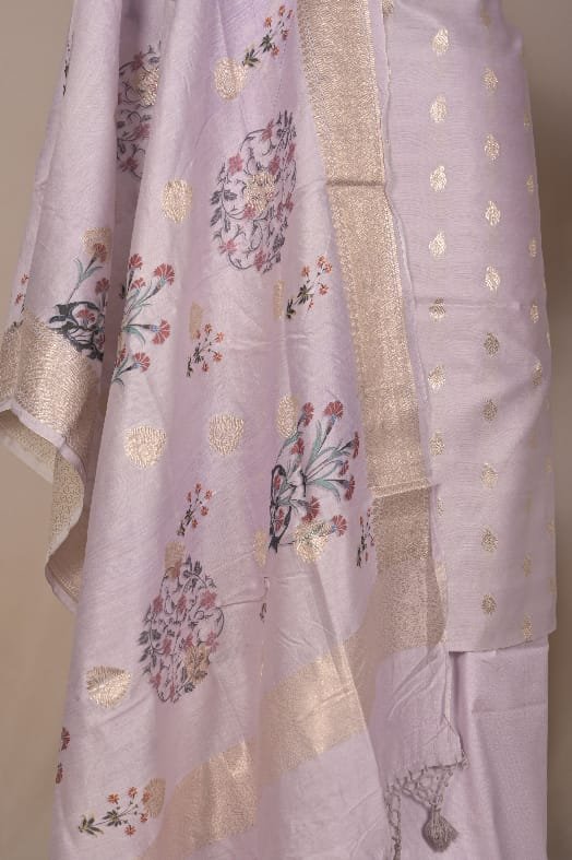 Pure Silk Double Print Chanderi Zari Booti Suit BF33N0035 ₹3,500.00