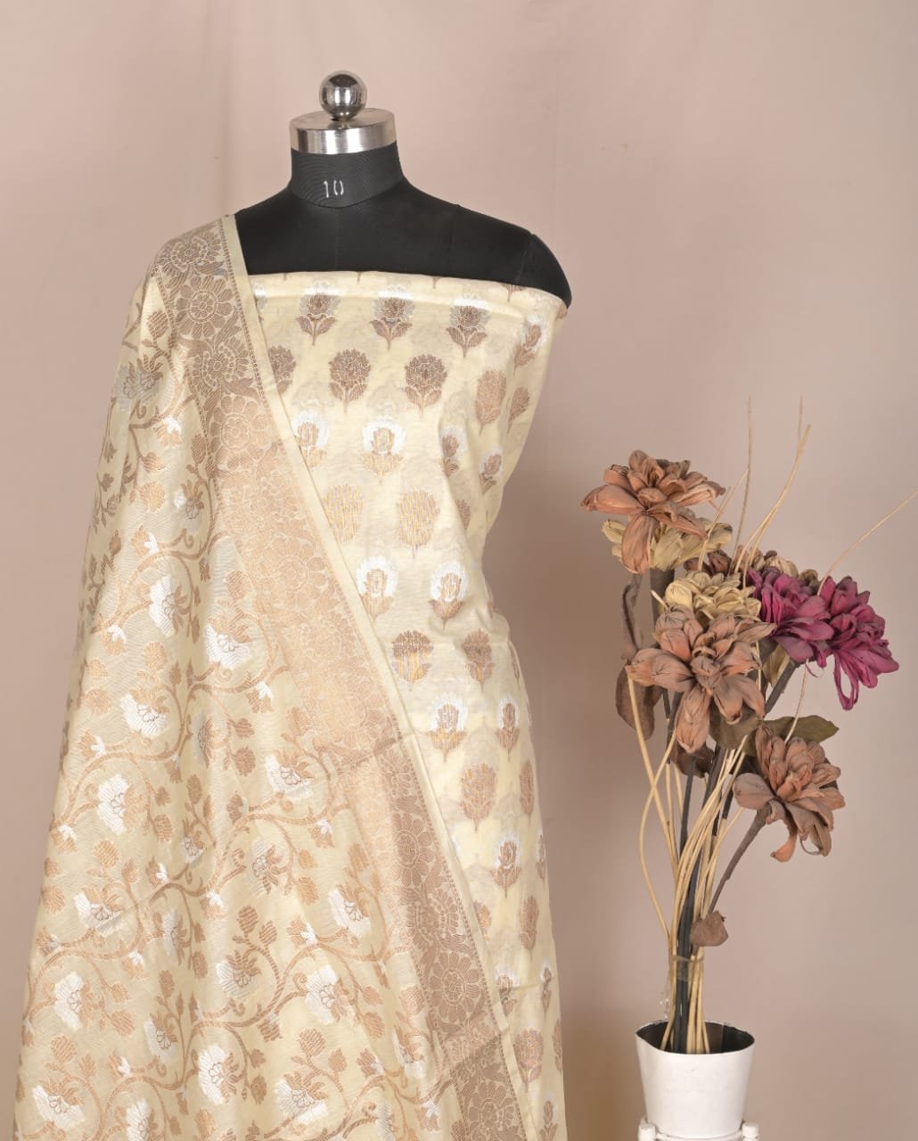 Creme Color Chanderi Zari Booti Suit
