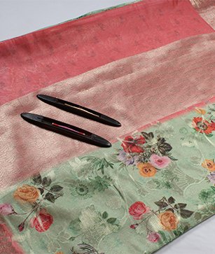 This Gorgeous Banarasi Semi Silk Floral Printed Sarees, You Can Wear It In Any Occasion.