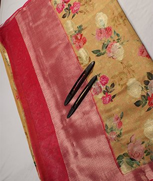 This Gorgeous Banarasi Semi Silk Floral Printed Sarees, You Can Wear It In Any Occasion.